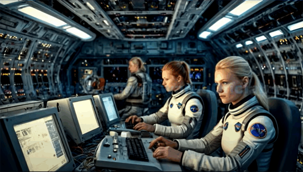 更奇怪的是,他们后来又说飞船需要特定的关闭程序。这意味着他们 竟是知道如何启动和关闭那艘飞船的,他们在对我撒谎。那时,至少有一个人在我坐在控制台前的时候离我很近,所以也许在某个时候,他们碰到了我的裙子或其他什么地方,而我没有注意到,并且意识到我只是一个全息影像。