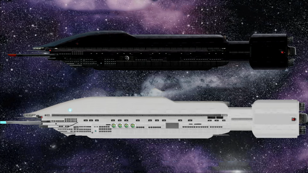 托莱卡号和萨迪克莱亚号并排停靠,主机库的伸缩门并排打开,方便我们步行从一艘星舰进入另一艘。这一切都得益于加压对接系统。几乎每艘星舰都配备了这种系统。